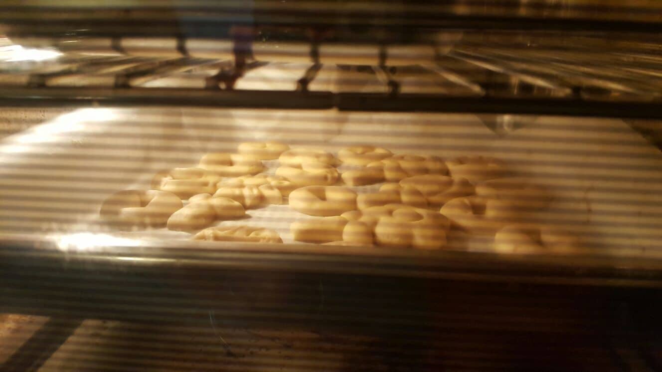 Door het uitsnijden van de koekjes is veel deeg in hun mond verdwenen, dus toen al was deze baksessie een groot succes. Nadat we alle vormpjes uit hadden gestoken hebben we ze in de oven gedaan.