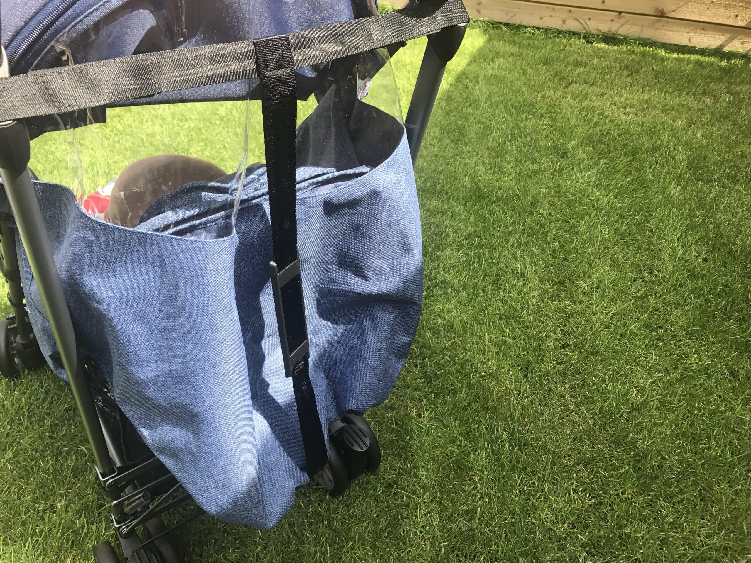 Onderin de buggy zit een mand voor bijvoorbeeld je boodschappen of andere dingen. Deze is groter dan de gemiddelde buggy. Net als bij andere buggy’s kan je geen tas aan de buggy bevestigen. Daarom is het extra fijn dat de bak onderin de buggy iets groter is dan gemiddeld. Ik moet wel zeggen dat dat nog steeds te klein is voor wat ik allemaal wel niet meeneem ;-).