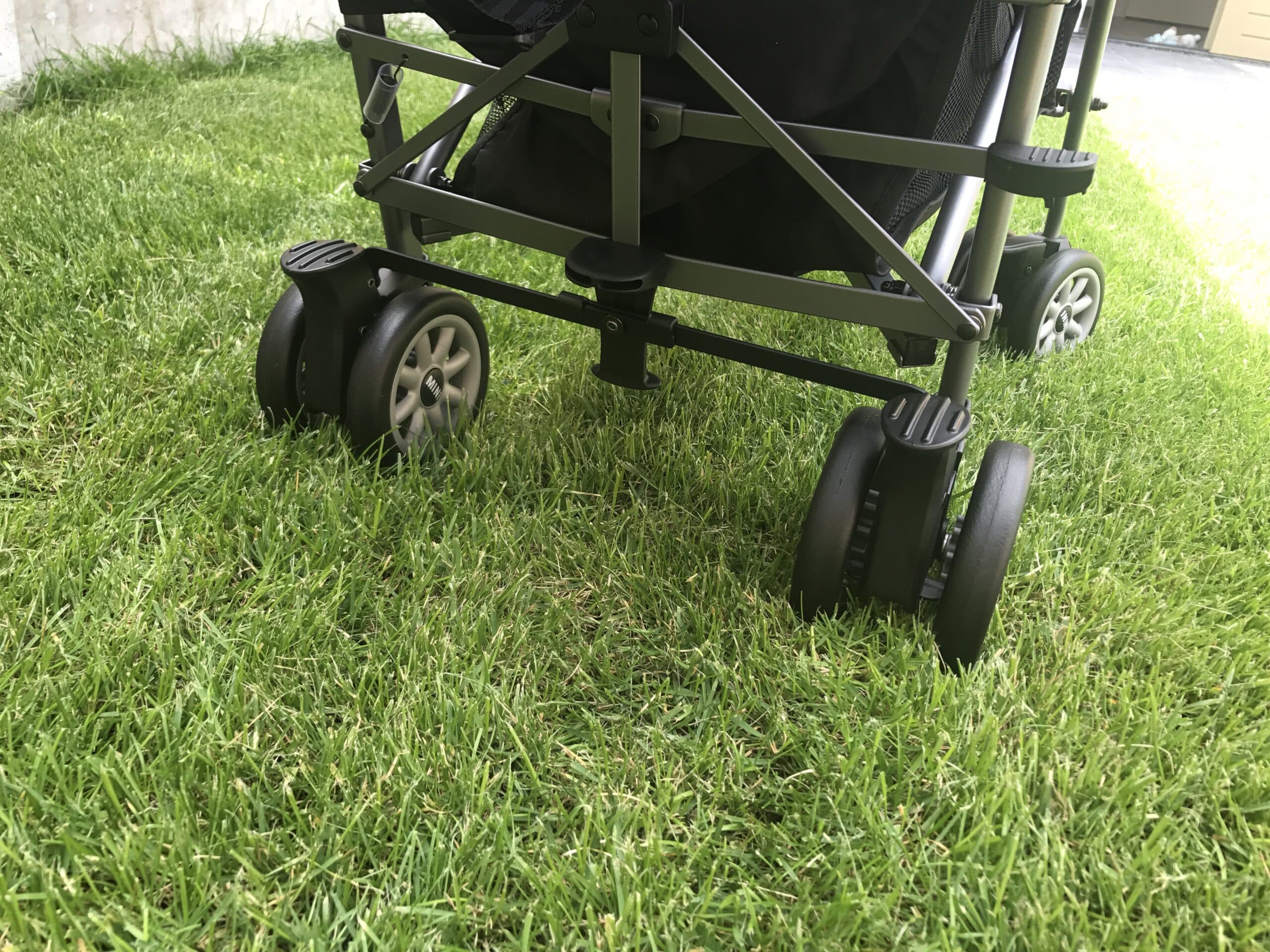 Toen ik de buggy uit de doos haalde en hem uitklapte merkte ik meteen verschil met de buggy’s die ik niet zo fijn vind. Deze is hoog. Ik heb een hekel aan buggy’s waarachter ik met een gebogen rug loop, maar bij deze kan ik gewoon met een rechte rug blijven lopen. Deze buggy voelt ook heel stevig en stabiel aan.