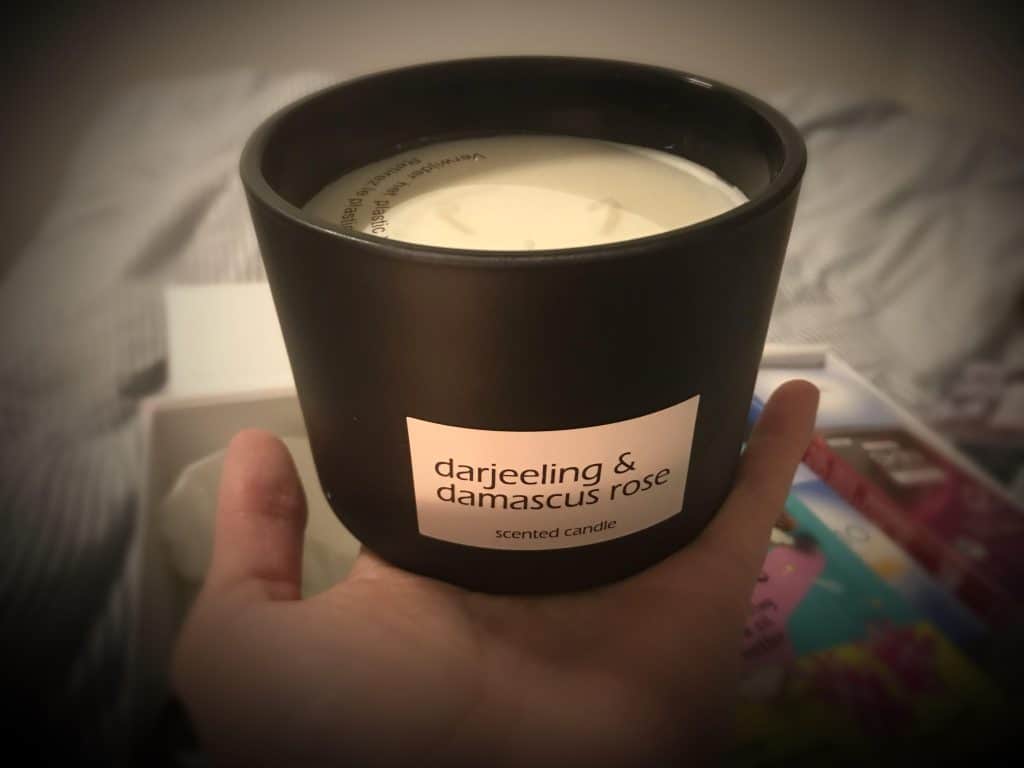 Door dit pakket heb ik iets nieuws tijdens mijn avondroutine. De nieuwe geurkaars van Kruidvat. Hij is lekker groot en hij ruikt heerlijk. In mijn mandje voor mijn avondroutine komt dus ook een aansteker te liggen.