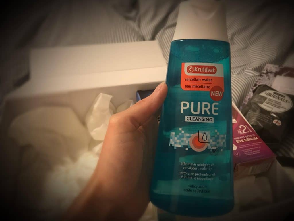 ‘s Avonds ga ik vaak douchen en haal ik na het douchen mijn make-up eraf. Dit doe ik nu met de Kruidvat Pure Cleansing (micellair water). Heerlijk natuurlijk product dat niet prikt. Ik vind sommige gezichtsreinigers wel eens prikken. Deze cleansing doe ik op met een watje. De watjes die ik heb komen ook heel toevallig van het Kruidvat.