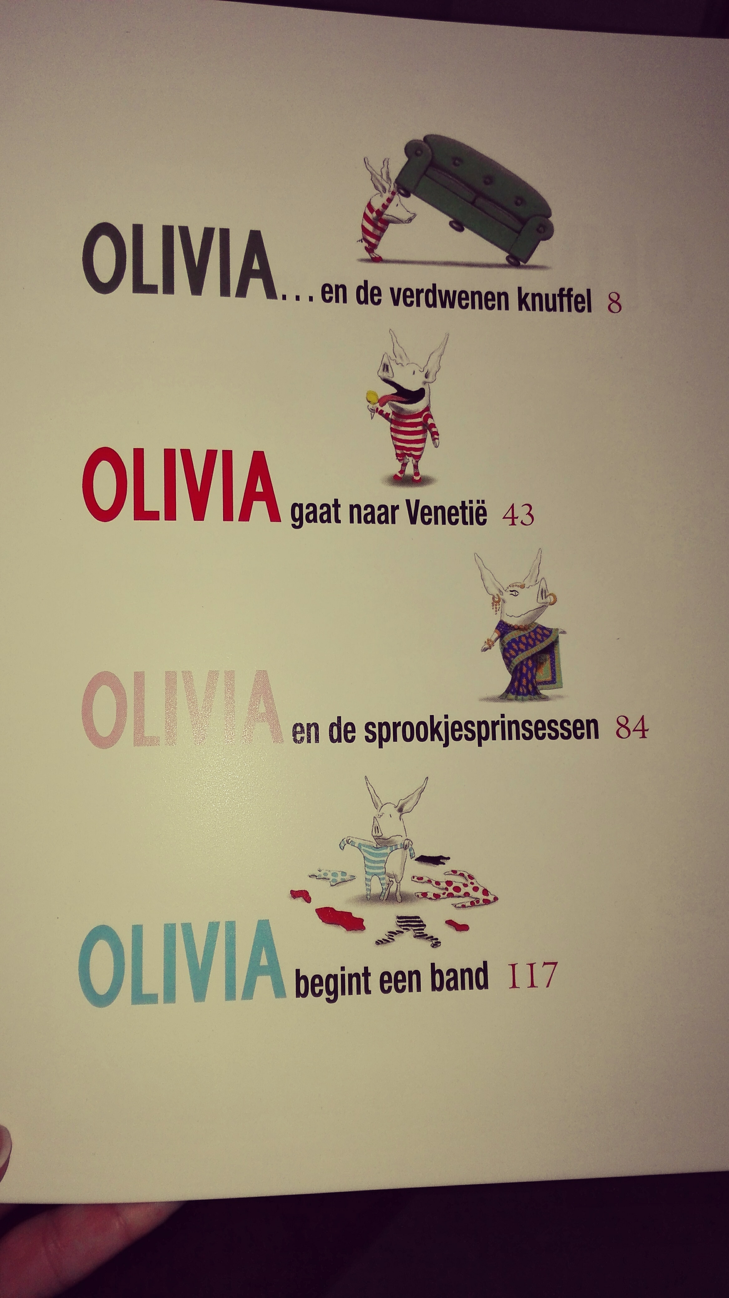 eigenlijk met name van televisie, maar nu ligt er bij ons ook een prachtig boek van haar. Het is werkelijk een mooi, origineel, bijzonder boek. Mooi en origineel vanwege de leuke verhaallijnen die erin staan. Olivia reist naar verschillende delen in de wereld, maar beleeft ook van alles thuis en het is 10 keer zo mooi dan op televisie. Het is een heel dik boek. De verhaaltjes zijn niet erg ingewikkeld, en Luna (7 jaar) leest de verhalen zelf, maar heel a