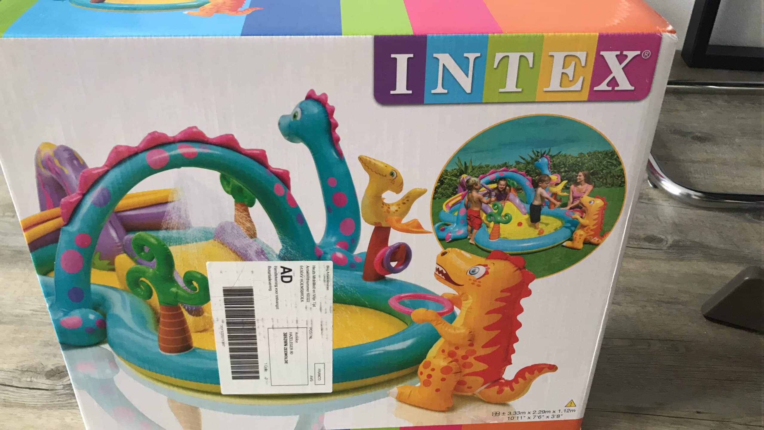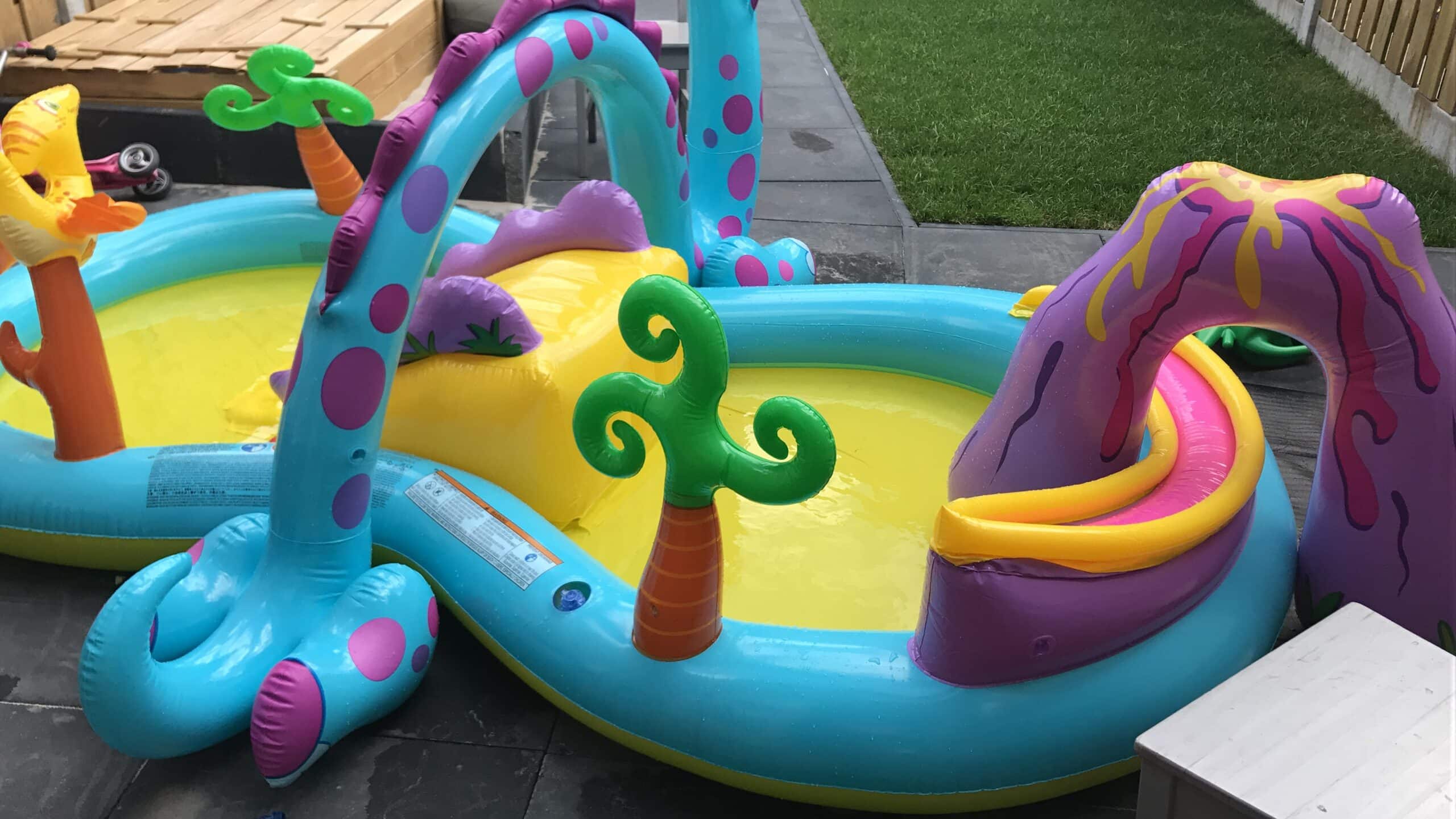 Wij kozen namelijk voor het zwembadje “Dinoland”. Wij kozen deze omdat Nola dol is op glijbanen en laat er in dit opblaasbaar zwembadje nou een glijbaantje zitten.
