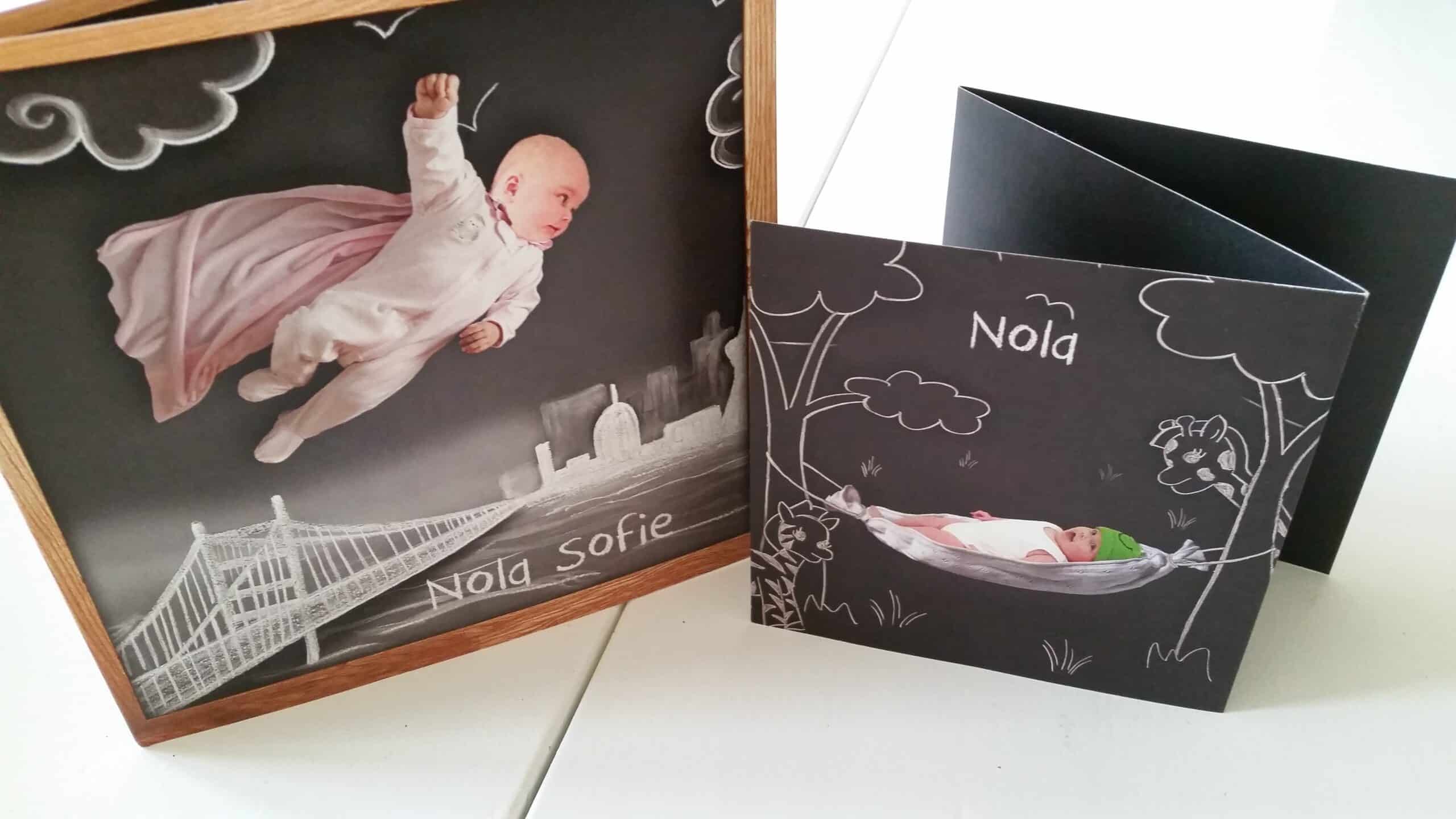 Het zijn geboortekaartjes dus Nola is al een erg grote baby voor op de kaartjes. Ze vroegen mij om foto’s van Nola, voor op het kaartje, maar Nola was erg aan het bewegen terwijl ik een foto probeerde te maken. Een pasgeboren baby zal rustig liggen en leg je dus makkelijk vast op camera. Je stuurt de foto door naar geboortepost en zij gaan direct aan de slag met het kaartje. Ook al is het weekend, zondag of een feestdag, jij hebt je kaartje zo snel mogelijk.