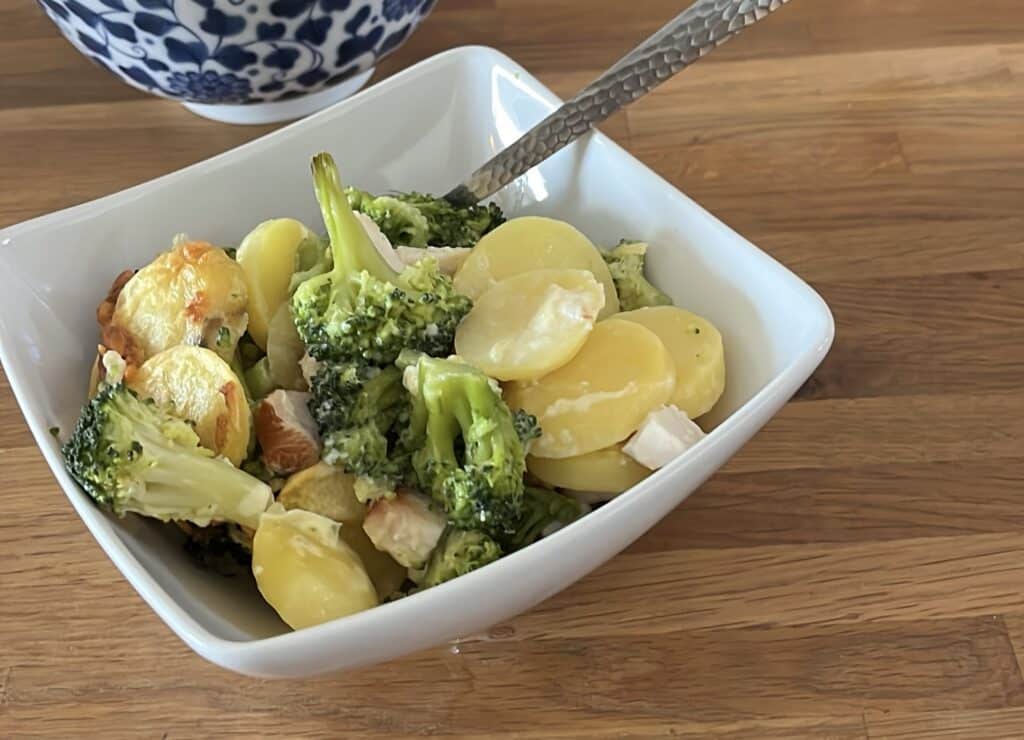 Deze broccoli schotel in de airfryer is perfect voor een gezonde maaltijd zonder veel gedoe. Met broccoli, aardappelschijfjes, gerookte kip, kookroom en geraspte kaas, zet je in een handomdraai een lekkere en voedzame maaltijd op tafel.