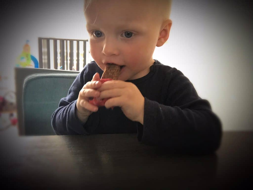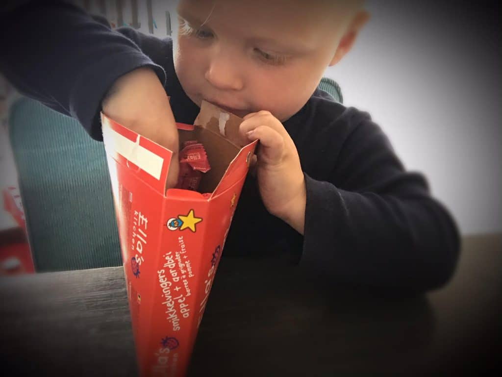Ella’s Kitchen heeft meteen ook Liam verwend! Hij is dol op de Smikkelvingers. Hij krijgt ze elke keer weer. Deze zijn met appel en aardbei. Nola pikt er ook af en toe stiekem een, maar ze is er niet net zo dol op als haar broer. De repen zijn voor kinderen vanaf 12 maanden.