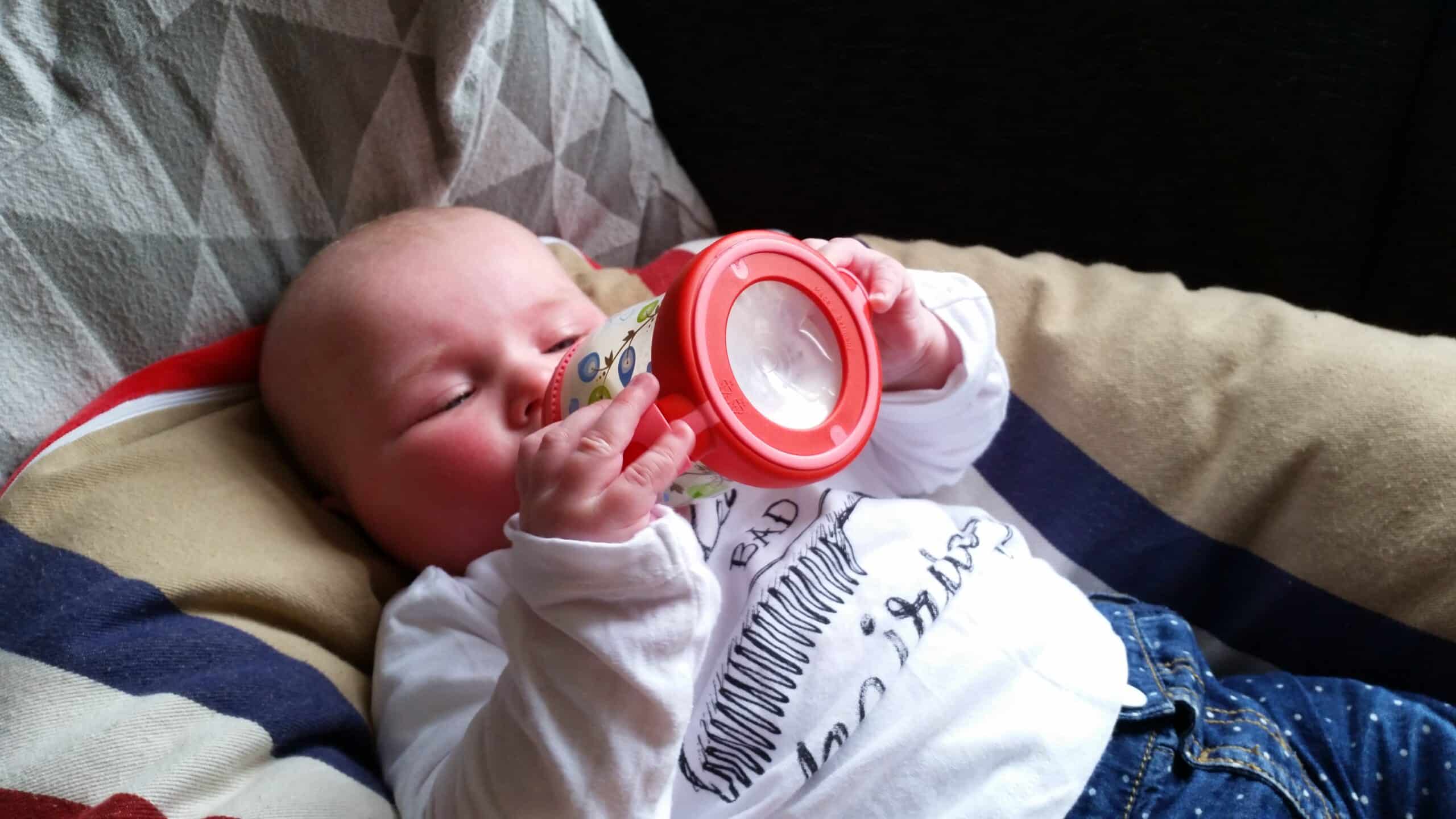 Ik moet er nog wel bij blijven zitten want soms gaat ze met de fles spelen en bedenkt ze nog niet echt dat de fles op het einde omhoog moet om het laatste beetje er uit te krijgen. Maar goed het heet ook niet voor niets een “trainingsfles”. Ik vind het nog erg fijn om haar een fles te geven. Het heeft altijd wel wat ontspannends. De fles is goed voor de motoriek en ik merkte dat Nola er wel aan toe was om het zelf te proberen. Af en toe drinkt ze zelf nog een flesje en soms geef ik haar nog lekker een flesje :-).