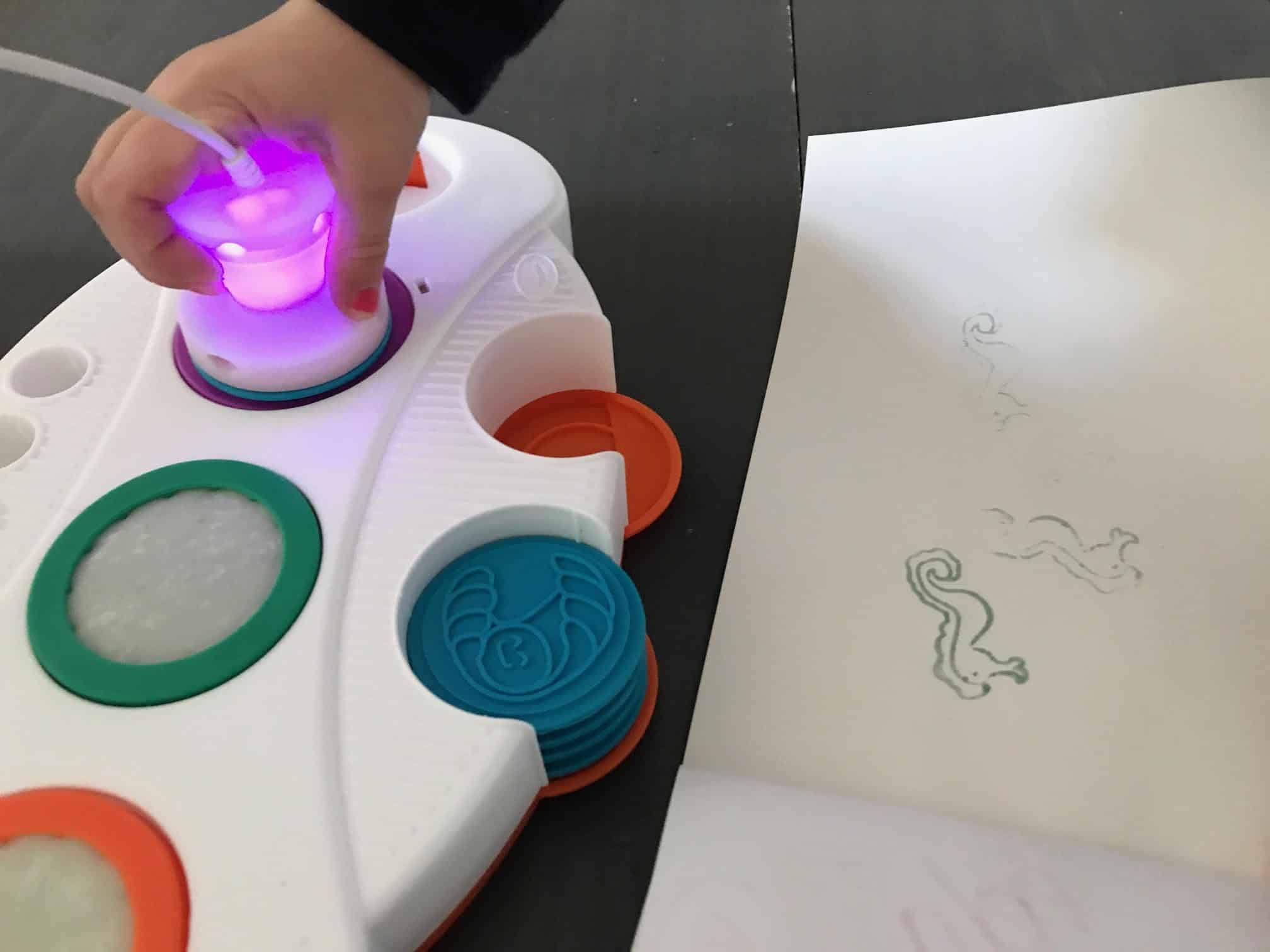 Van Crayola kregen wij laatst de Crayola Wonder Light up stamper. Het is een soort water/inkt met een apart soort papier waardoor je pas wat ziet wanneer je kleurt of stempelt. Zo worden kleren, meubels enzovoort niet vies wanneer je kindje er op stempelt of kleurt. Heel handig! Dit is leuk vanaf een jaar of 2,5.