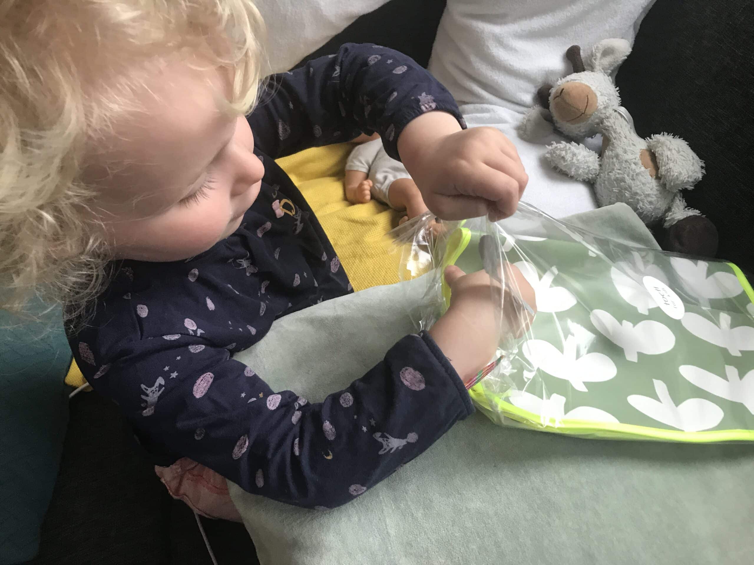 We kregen een maandje geleden een leuk cadeautje van Toeti For Kids. Een webshop met verantwoorde baby- en kinderartikelen. Wij kregen iets voor Nola en iets voor Liam. Het was erg leuk ingepakt. Nola scheurde het meteen open.