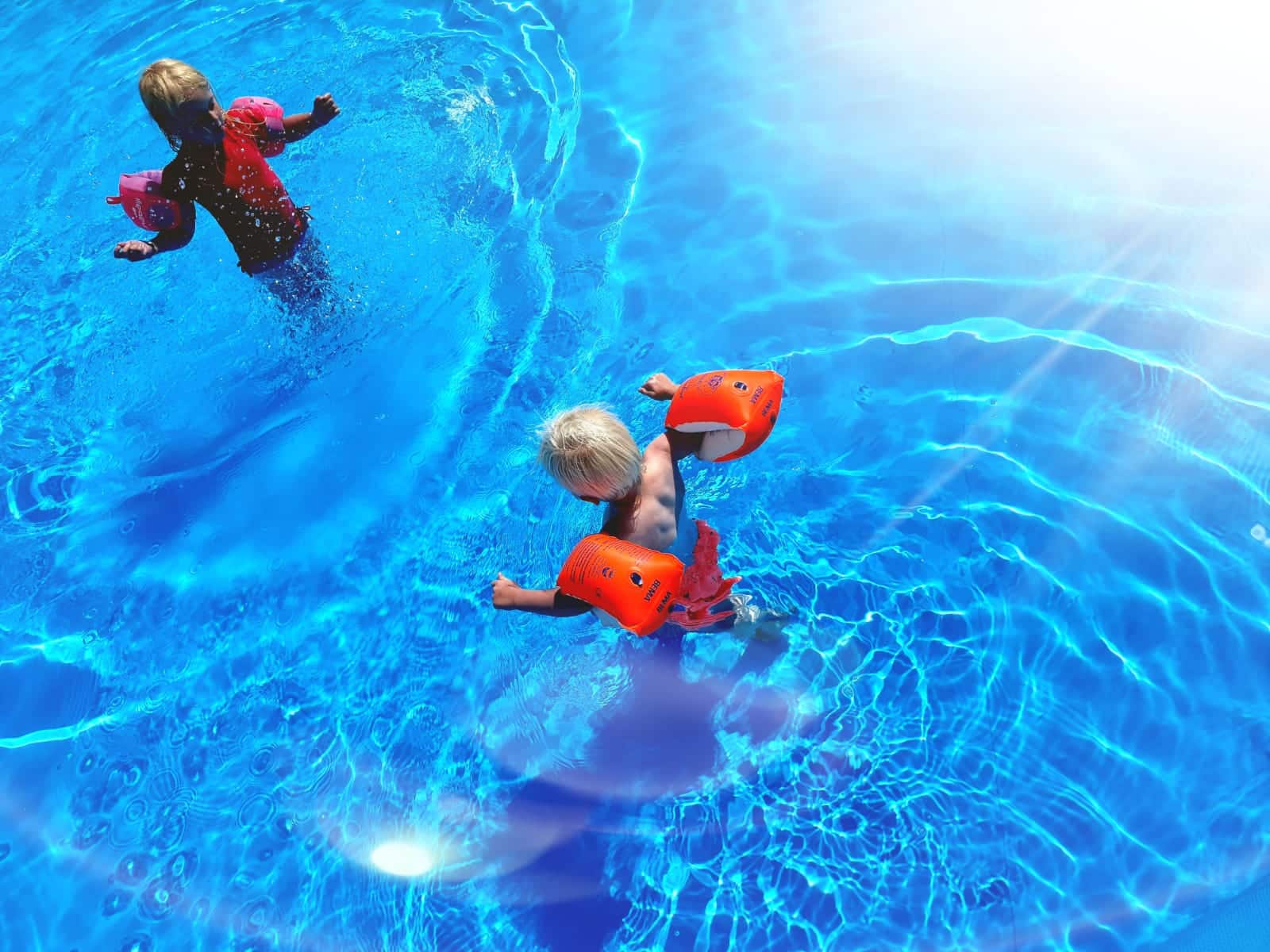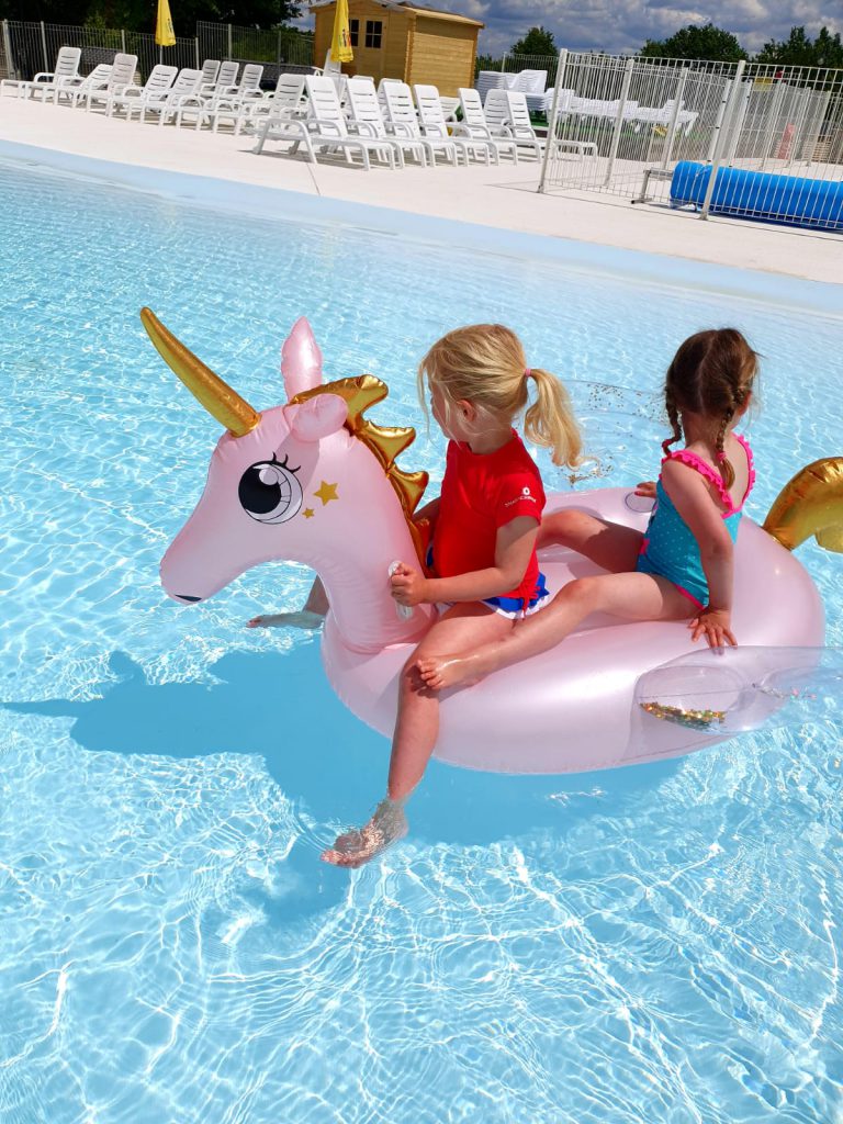 Naast het zwemmen in het grote zwembad, nemen wij ook altijd een opblaasbadje mee. Hij hoeft niet heel groot te zijn, maar als je een keer geen zin hebt om naar het zwembad te gaan dan kunnen ze in ieder geval wel met water spelen. Een parasolletje erboven is al helemaal top.