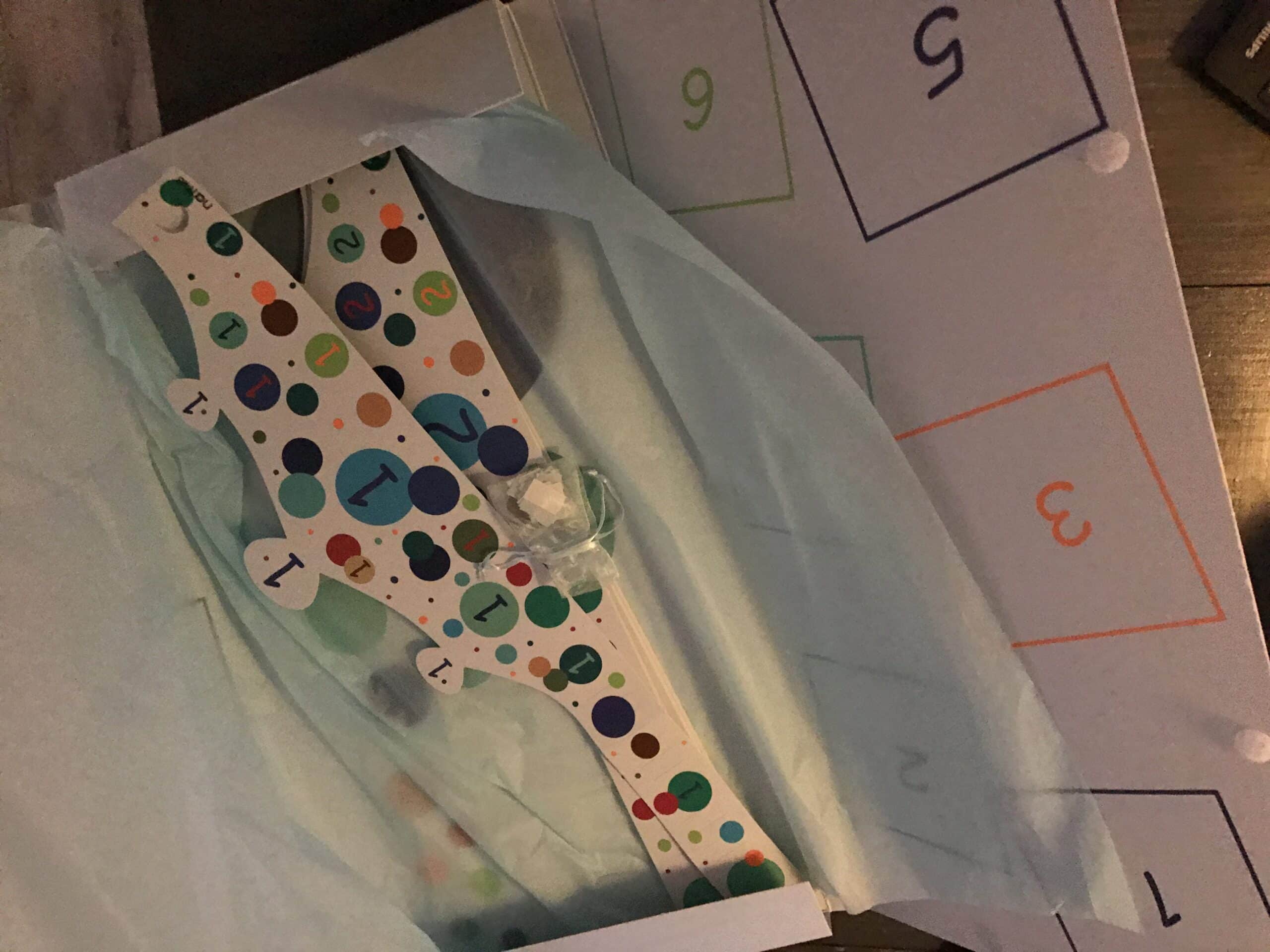 De Twelfie-Kit is een langwerpige doos. Alleen de doos ziet er al mooi uit. Hij is stevig en je kan hem openen en dicht doen met klittenband. Dit komt doordat je de doos wel moet/kan bewaren. In de doos zitten allemaal kroontjes. Op elk kroontje staat een cijfer die staat voor het aantal maanden dat je kindje is.