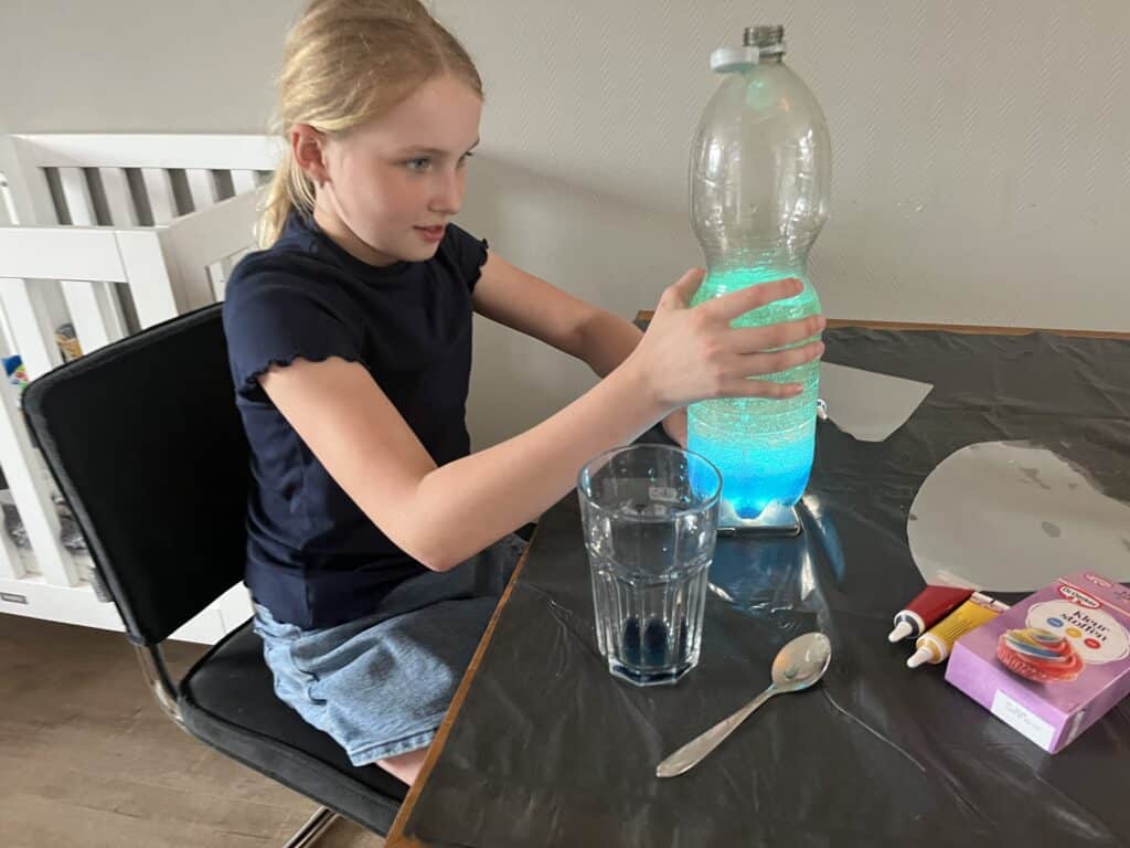 Nola wilde al een tijdje een lavalamp maken. Eigenlijk dacht ik dat dit echt een zooitje zou gaan worden. Net als het maken van slijm. Ik heb dit dus zo lang mogelijk uitgesteld. Maar op een dag dat Liam ziek was en ik niet fit ging ik toch over stag.